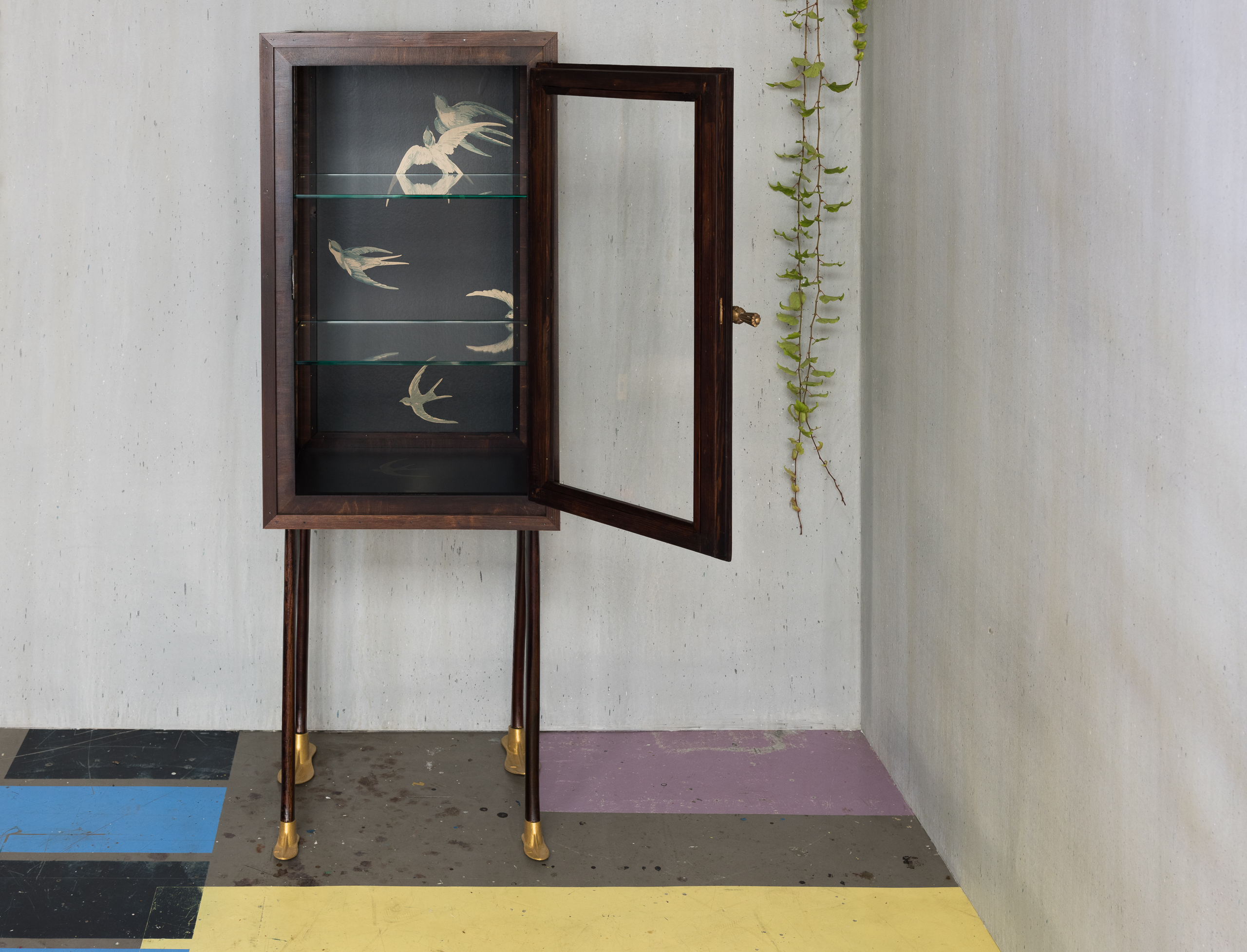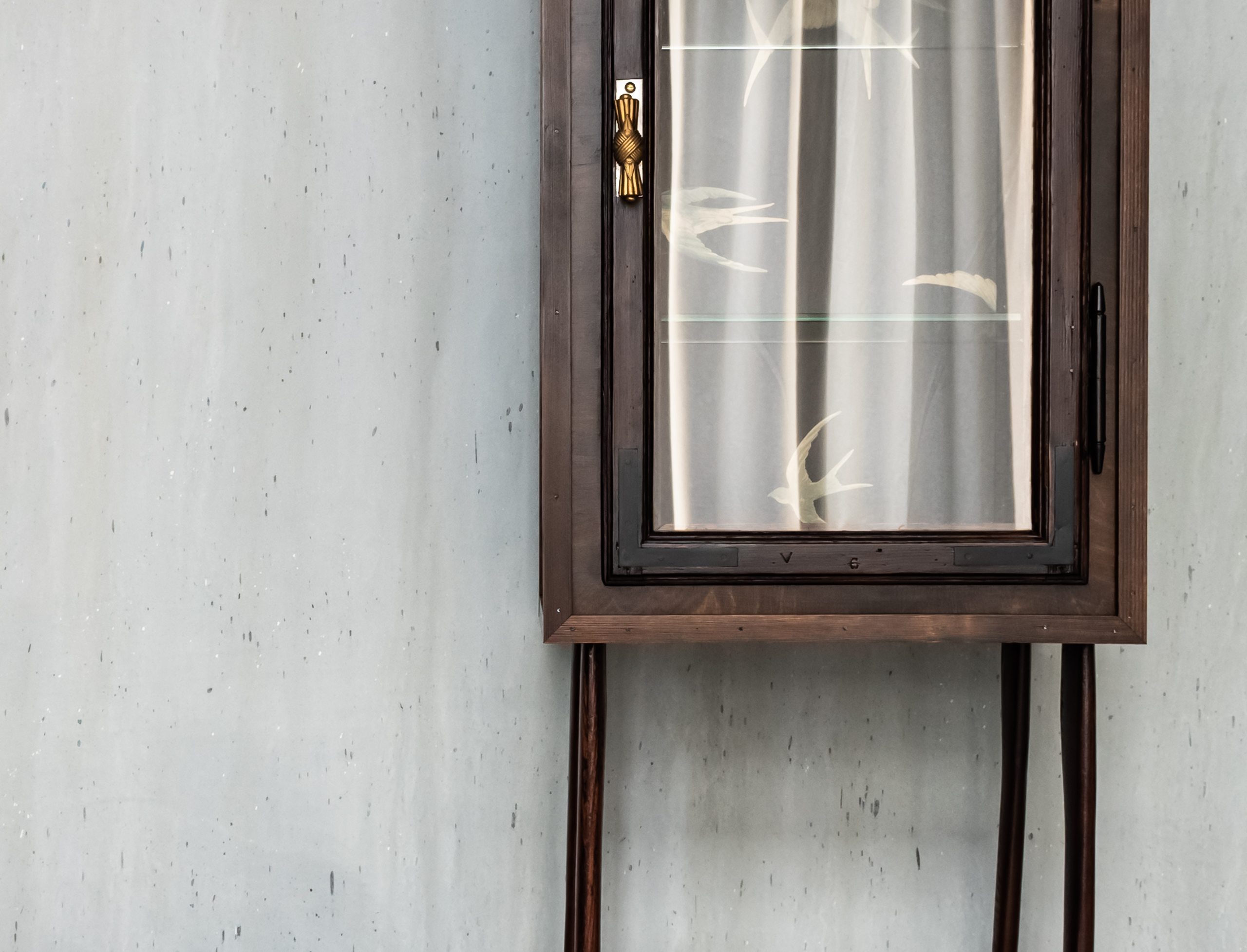 • Rückfront aus englischer Schwalbentapete (schwarz & gold)