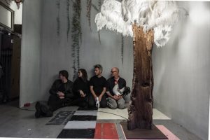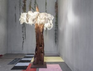 - gestrandeter Lindenstamm geschmückt mit echten Straußenfedern (50 cm Länge).